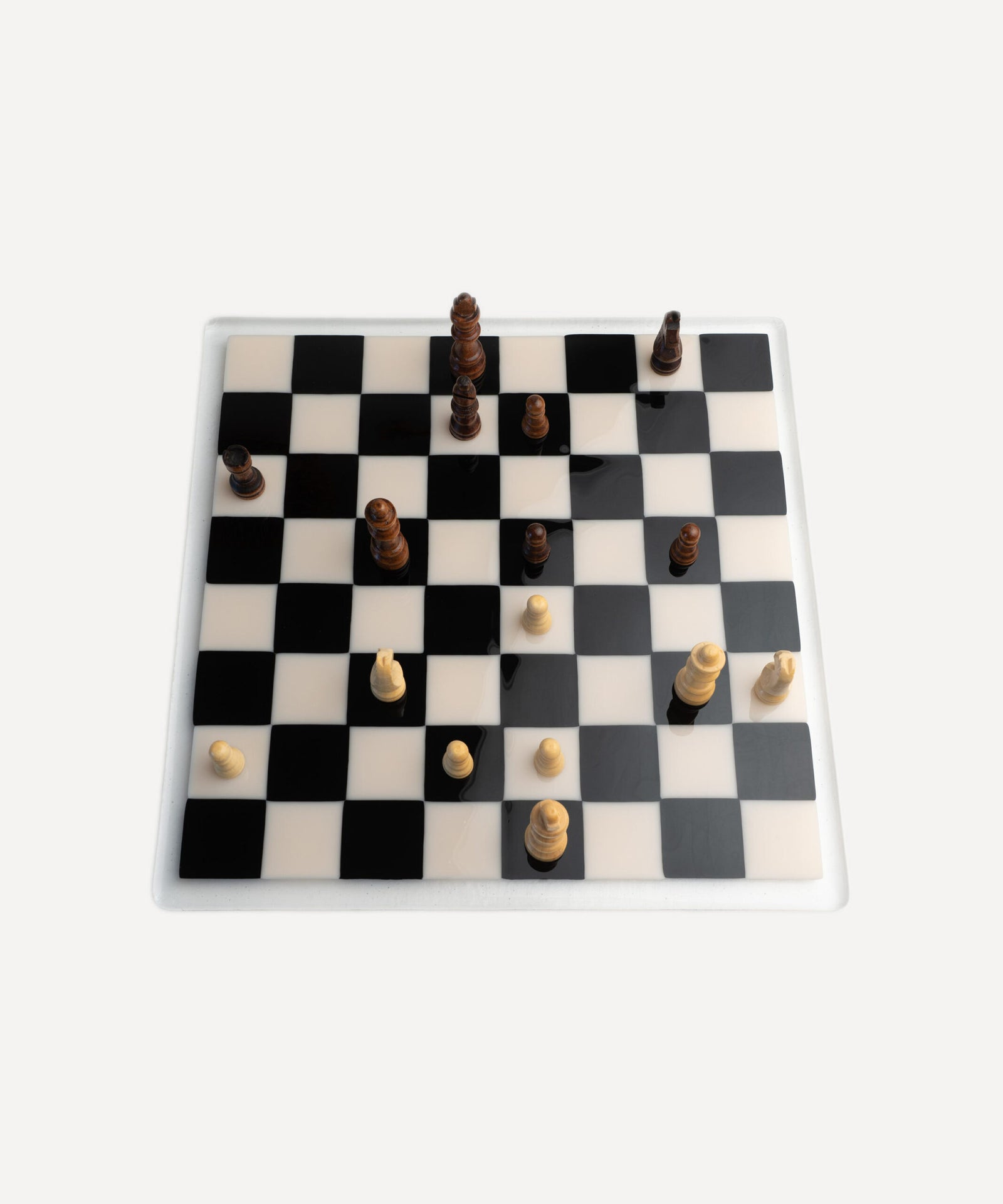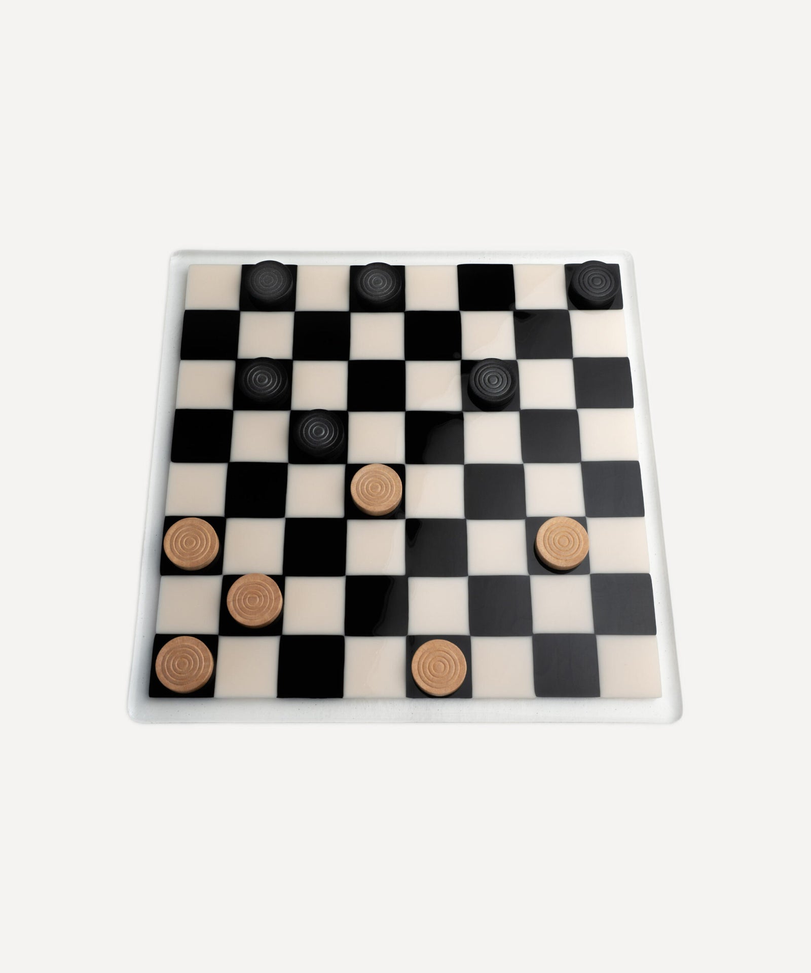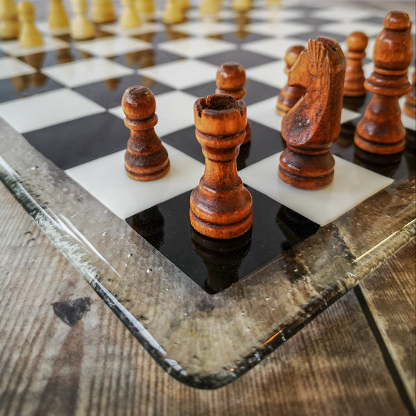 35cm Glass Chess/Draughts Board in Black & White - Bullseye Collection