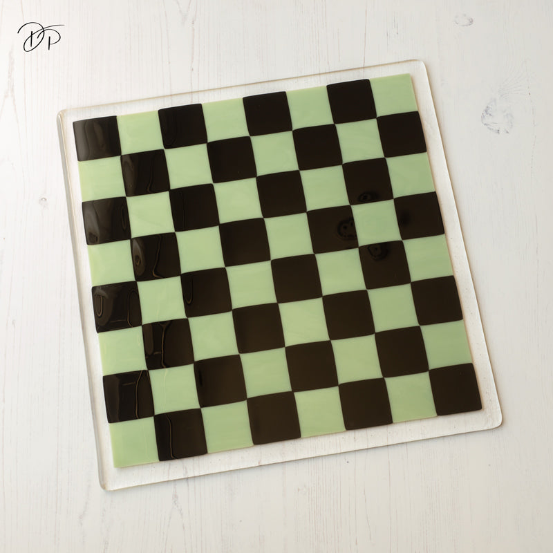 35cm Glass Chess/Draughts Board in Mint/Jade Green - Bullseye Collection