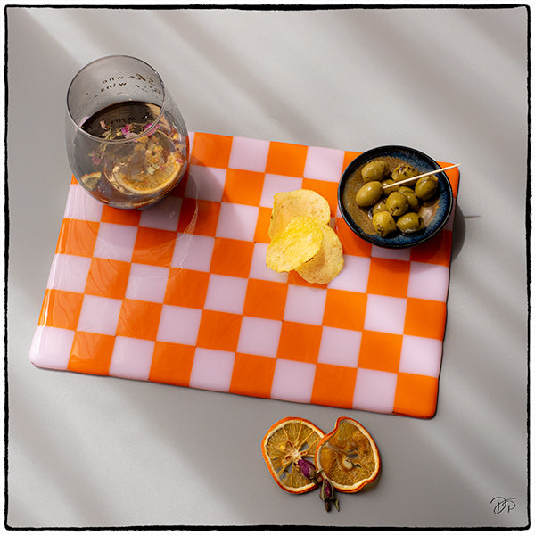 30x21cm Chequered Pink & Orange Coloured Placemat - Bullseye Collection