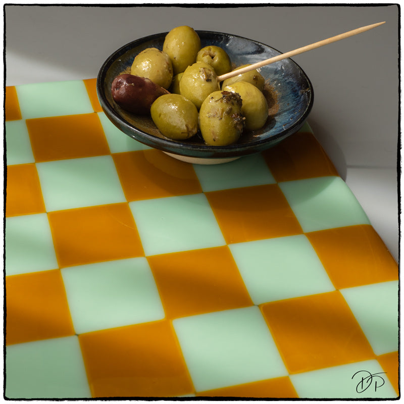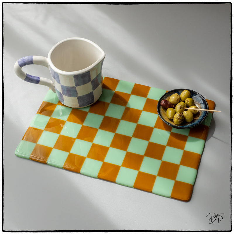 30x21cm Chequered Mint Green & Butterscotch Coloured Placemat - Bullseye Collection