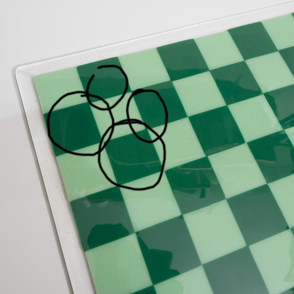 "Seconds" 35cm Chequered Mint/Jade Green Chess Board (please read full description)