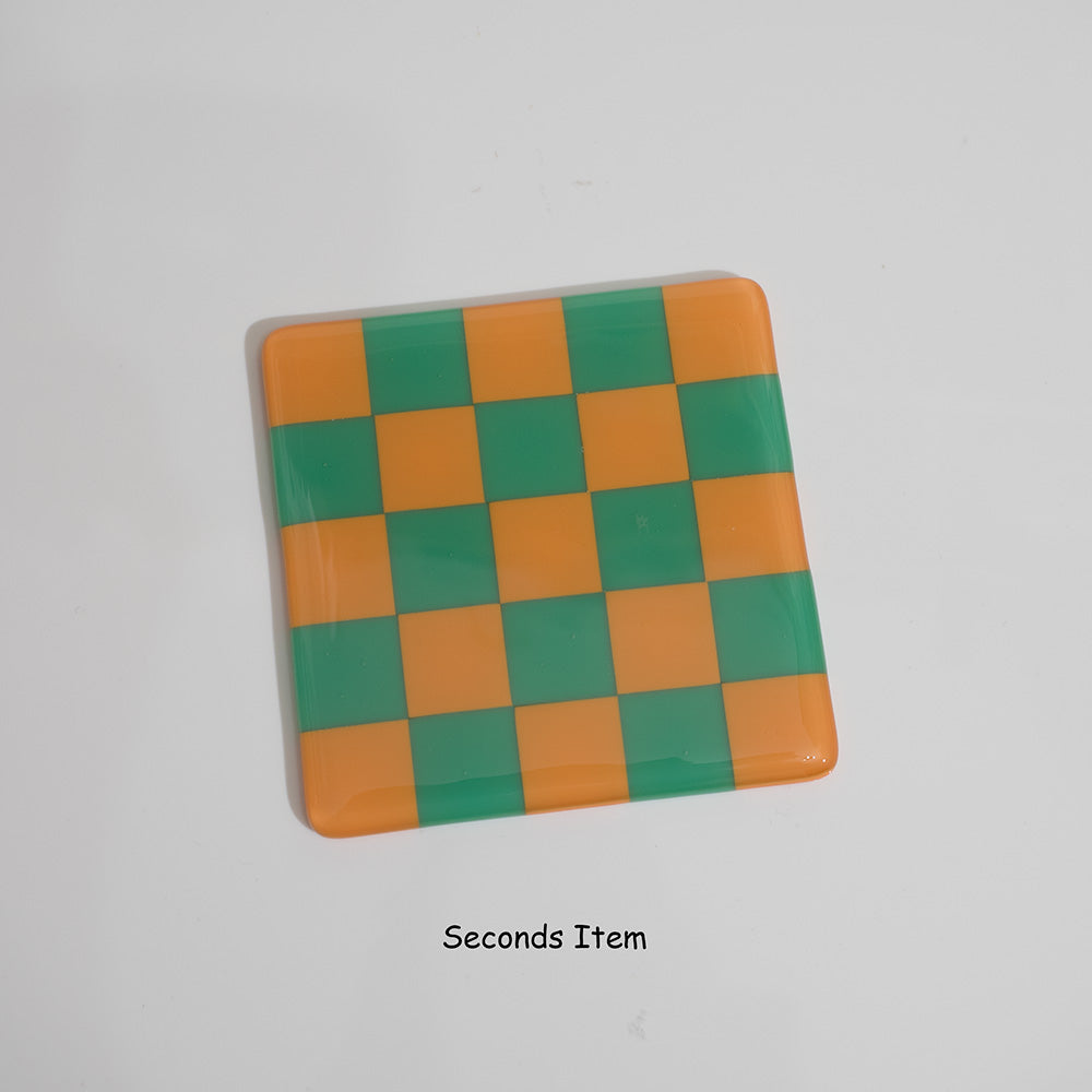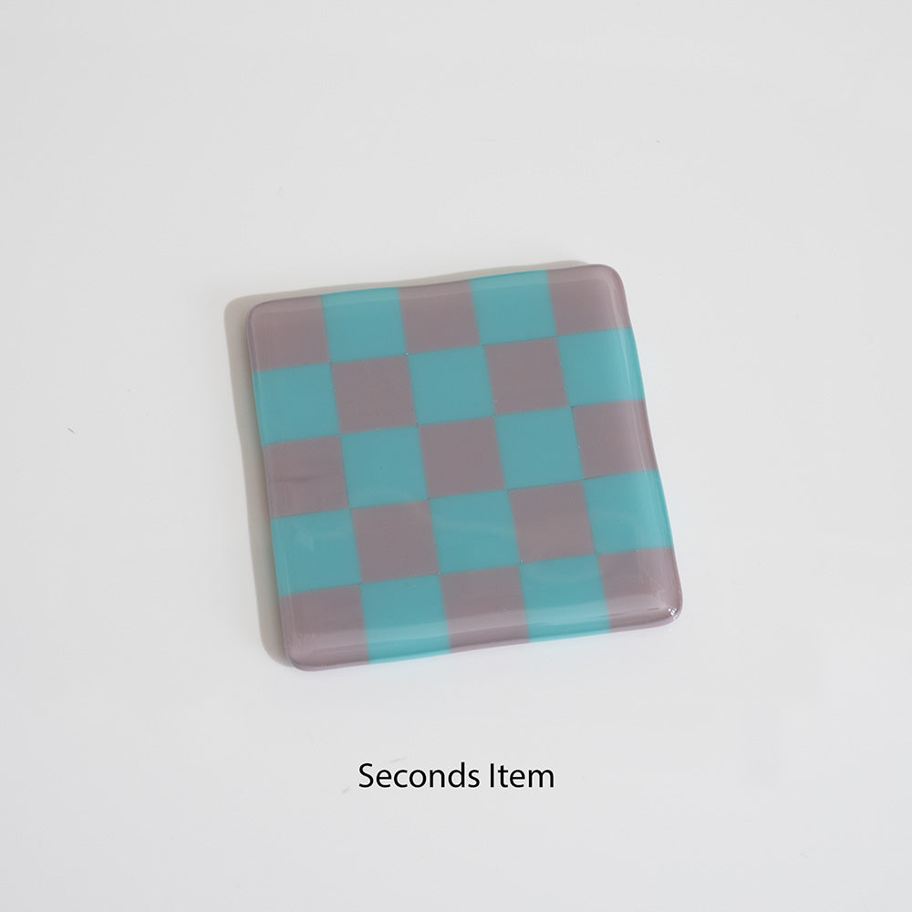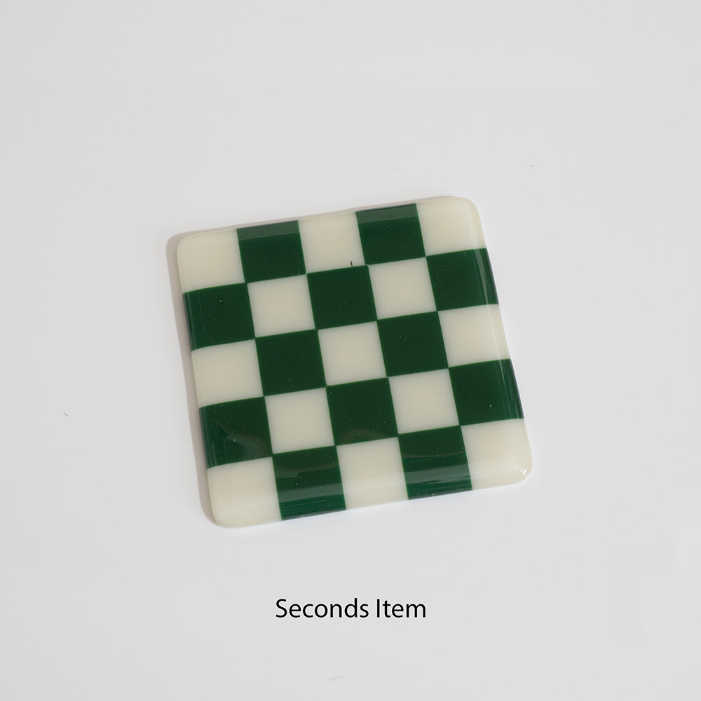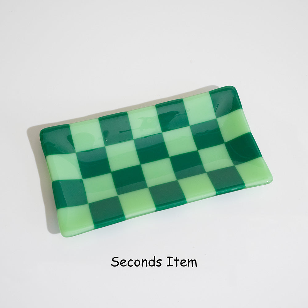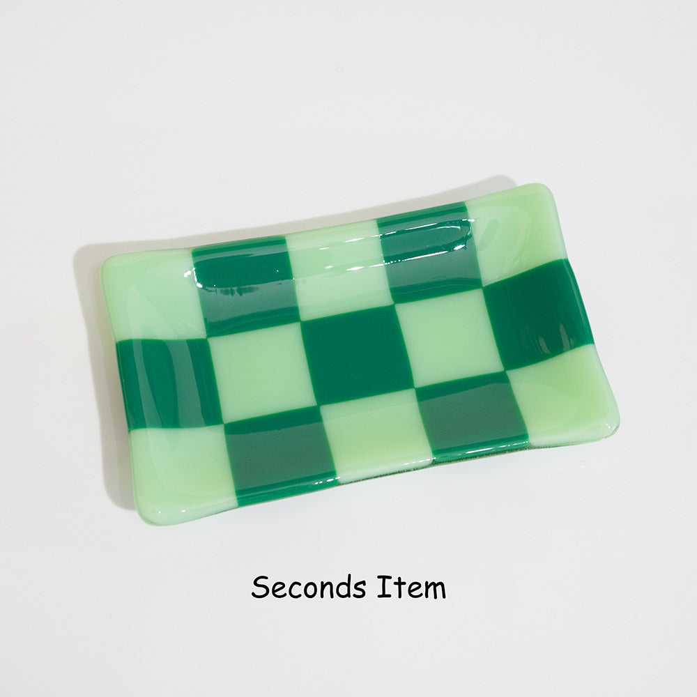 "Seconds" 15x8cm Chequered Mint/Jade Green Tray (please read full description)