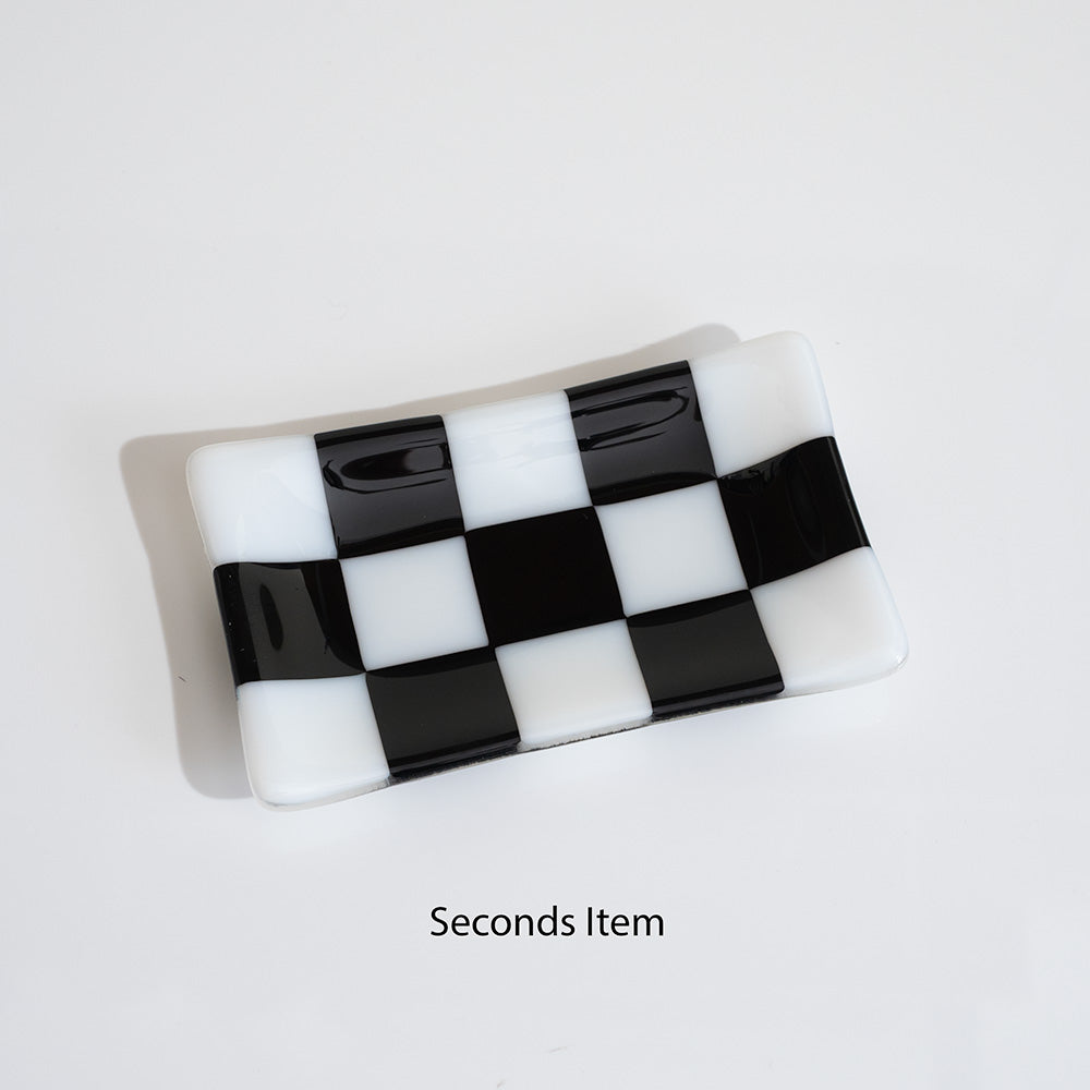 "Seconds" 15x8cm Chequered White & Black Medium Tray (please read full description)