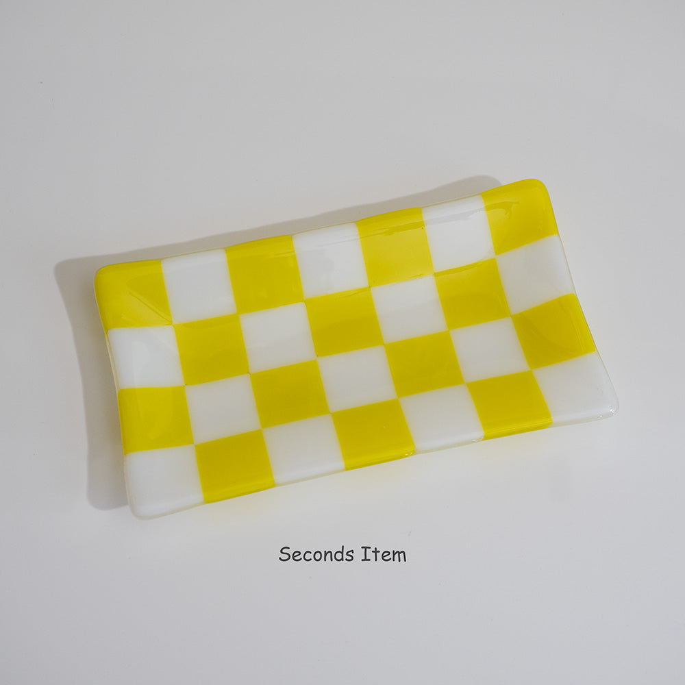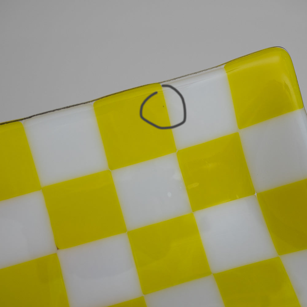 "Seconds" 21x12cm Chequered White & Yellow Large Tray (please read full description)