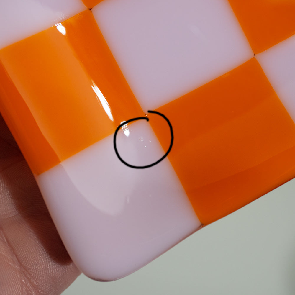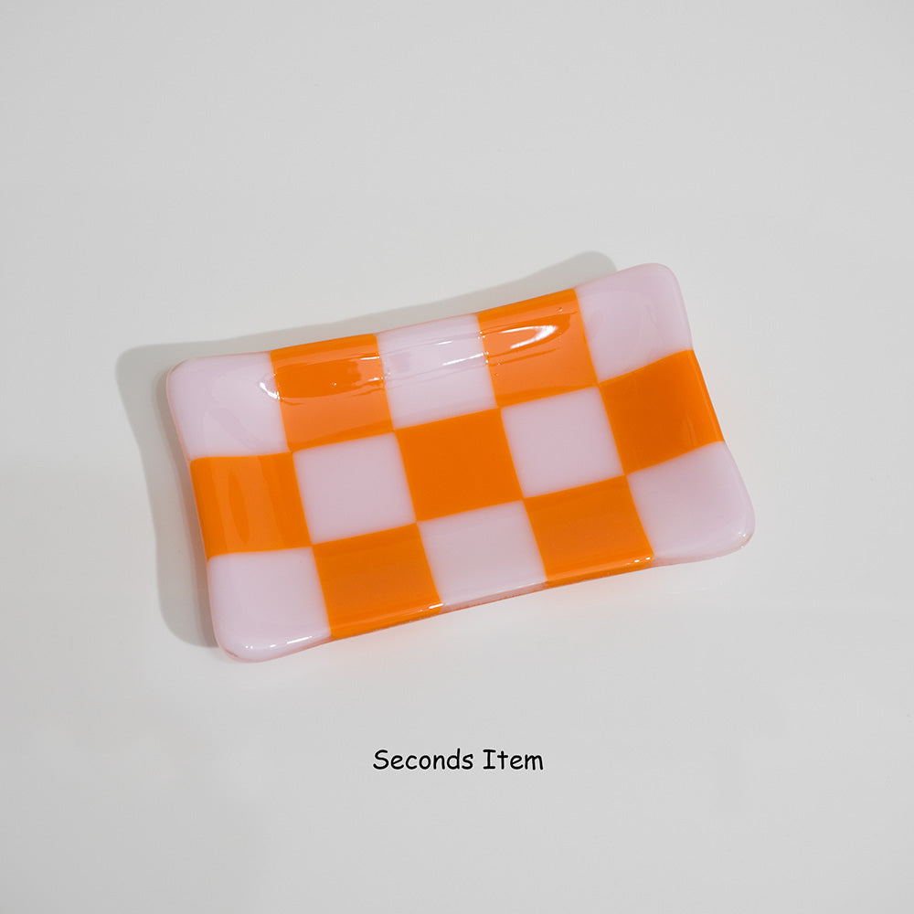 "Seconds" 15x8cm Chequered Pink & Orange Medium Tray (please read full description)