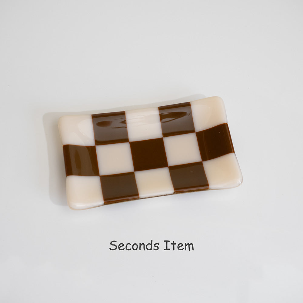 "Seconds" 15x8cm Chequered Almond & Brown Medium Tray (please read full description)
