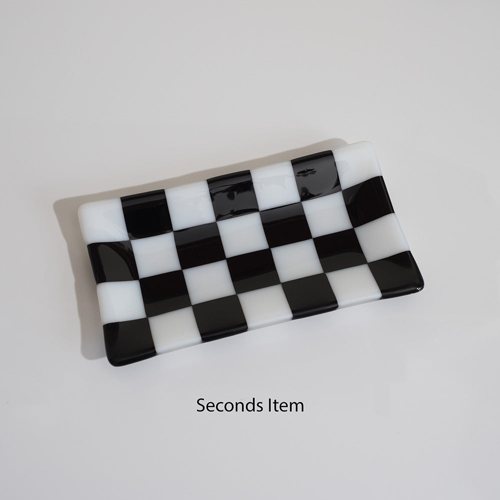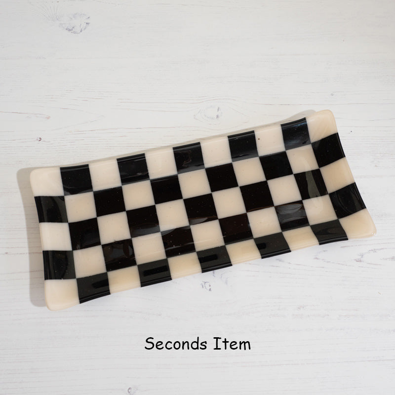 "Seconds" 21x12cm Chequered White & Black Large Tray (please read full description)