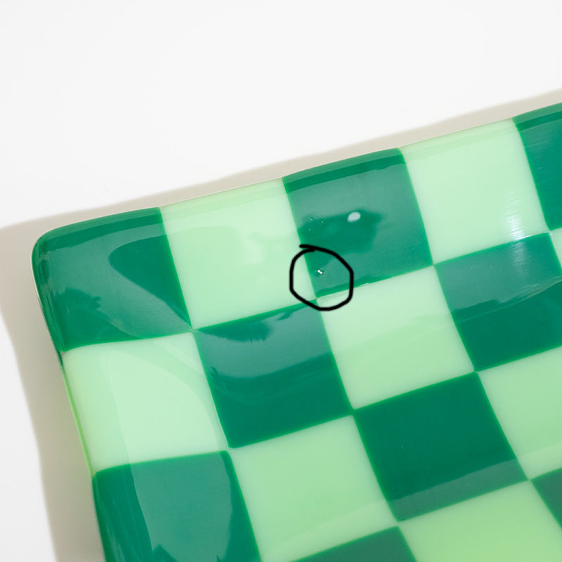 "Seconds" 21x12cm Chequered Mint/Jade Green Large Tray (please read full description)