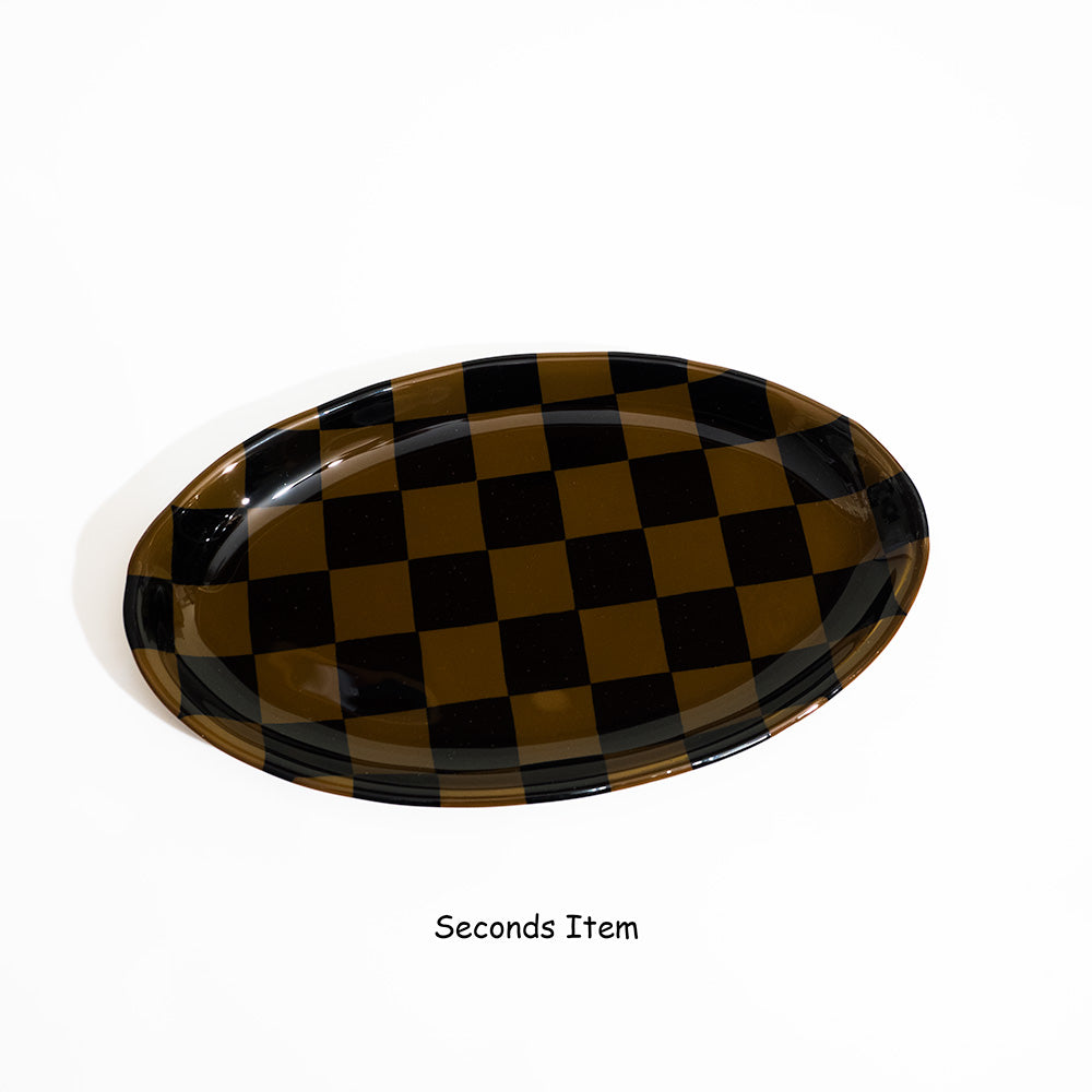 "Seconds" 30x18cm Chequered Brown & Black Oval Platter (please read full description)