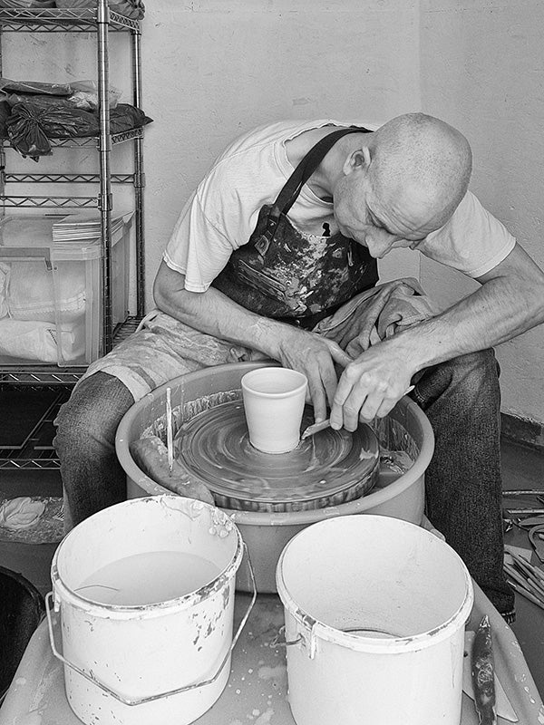 A cosy little self-made pottery shed dedicated to throwing on the Pottery Wheel from the comfort of the back garden and also opposite to the glass studio